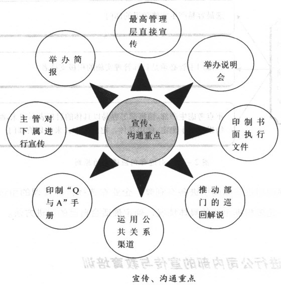 除了高層主管的宣傳外,更重要的是各部門主管也要對下屬直接宣傳。部門主管應一面分發宣傳資料,一面對下屬加以說明,以提高宣傳效果。