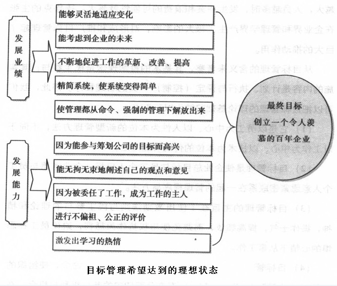 該圖是目標管理希望達到的理想狀態。需要指出的是,目標管理達到理想狀態的前提還應包括公司必須簿重每一個人,讓他們在自由的氣氛中最大限度地發揮自己的能力,實現自己的人生價值。