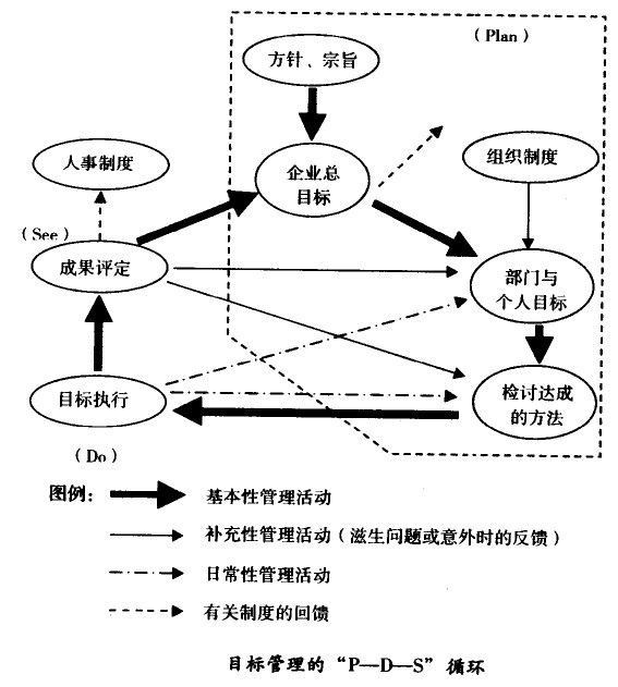 成果評價(see),分析實施后的績效。之后再將績效分析檢討修正,進行重新規劃,由此進入第二次“P—D一S”循環。目標管理同樣受此“P—D-S”循環的支配。