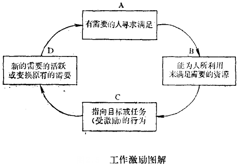 對大多數人來說,較低和較高兩種水平的需要不斷地得到滿足。工作激勵圖解可以解釋為一種需要循環。因此,消要的滿足只是一種暫時現象。一旦一種需要表現得到滿足,它就失去它的激勵力量。但是滿足通常是短暫的。一個主管人員被提拔為高級副總經理,可能使他對權力需要得到暫時滿足。不久以后,他將期待著尋找新的途徑來滿足權力需要。未來的新的滿足來源包括在目前的管理范圍內增添部門或扭任一個重要的社區職位(例如另一企業或非盈利組織的董事會成員)。